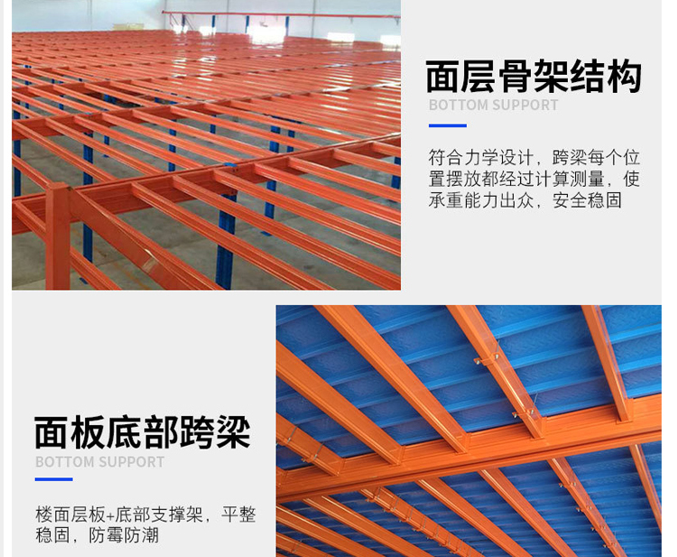 The attic style shelving system usually uses medium or heavy shelving as the main support and floor panels (the choice of shelving is determined based on the total load weight of the shelving unit). The floor panels are usually cold-rolled steel floors, patterned steel floors, or steel grating floors. The attic style shelving system is the construction of an intermediate attic on an existing workplace or shelving to increase storage space. It can be used as a second or third floor attic and is suitable for storing light foam and small and medium-sized goods. It is suitable for multi variety large batch or multi variety small batch goods, and manual storage and retrieval of goods. Goods are usually transported to the second or third floor by forklifts, hydraulic lifting platforms, or cargo elevators, and then transported to a certain location by light trucks or hydraulic pallet trucks.