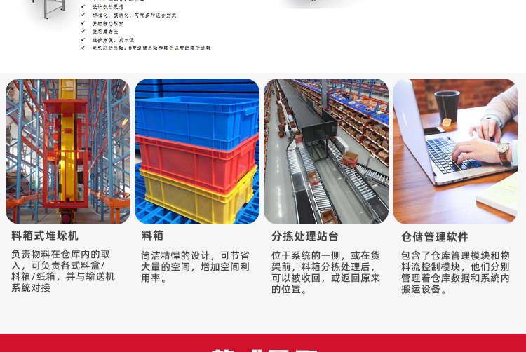 An automated three-dimensional warehouse is a complex automation system composed of three-dimensional shelves, track aisle stackers, inbound and outbound tray conveyor systems, size detection barcode reading systems, communication systems, automatic control systems, computer monitoring systems, computer management systems, and other auxiliary equipment such as wire and cable tray distribution cabinets, trays, adjustment platforms, steel structure platforms, etc. Using first-class integrated logistics concepts and advanced control, bus, communication, and information technology, through the coordinated actions of the above equipment, the automatic, orderly, fast, accurate, and efficient inbound and outbound operations of designated goods are completed according to user needs.