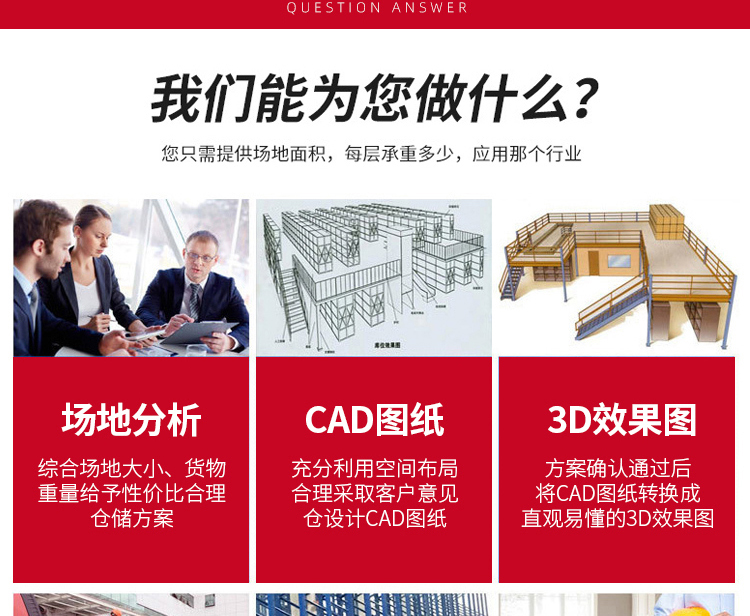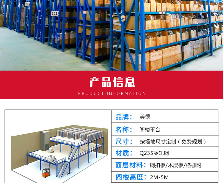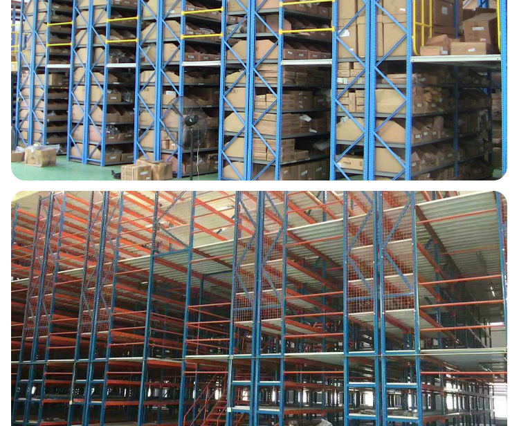 The attic style shelving system usually uses medium or heavy shelving as the main support and floor panels (the choice of shelving is determined based on the total load weight of the shelving unit). The floor panels are usually cold-rolled steel floors, patterned steel floors, or steel grating floors. The attic style shelving system is the construction of an intermediate attic on an existing workplace or shelving to increase storage space. It can be used as a second or third floor attic and is suitable for storing light foam and small and medium-sized goods. It is suitable for multi variety large batch or multi variety small batch goods, and manual storage and retrieval of goods. Goods are usually transported to the second or third floor by forklifts, hydraulic lifting platforms, or cargo elevators, and then transported to a certain location by light trucks or hydraulic pallet trucks.