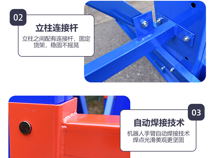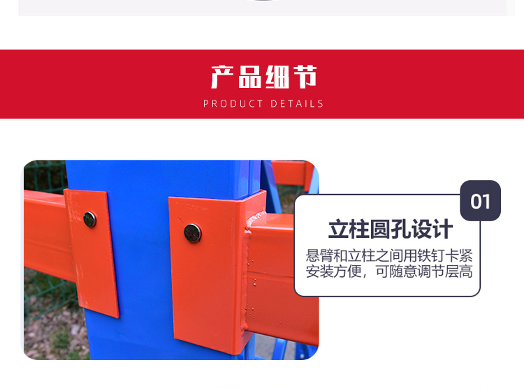 Cantilevered shelves are an important type of shelf. Cantilevered shelves are suitable for storing long materials, circular materials, plates, pipes, and irregular goods. Cantilevers can be single-sided or double-sided, and cantilever shelves have the characteristics of stable structure, good load-bearing capacity, and high space utilization. Cantilevered shelf columns are mostly made of H-shaped steel or cold-rolled steel, while cantilevers are made of square tubes, cold-rolled steel or H-shaped steel. The cantilevers are connected to the columns using plug-in or bolt connections, and the base is connected to the columns using bolt connections. The base is made of cold-rolled steel or H-shaped steel.